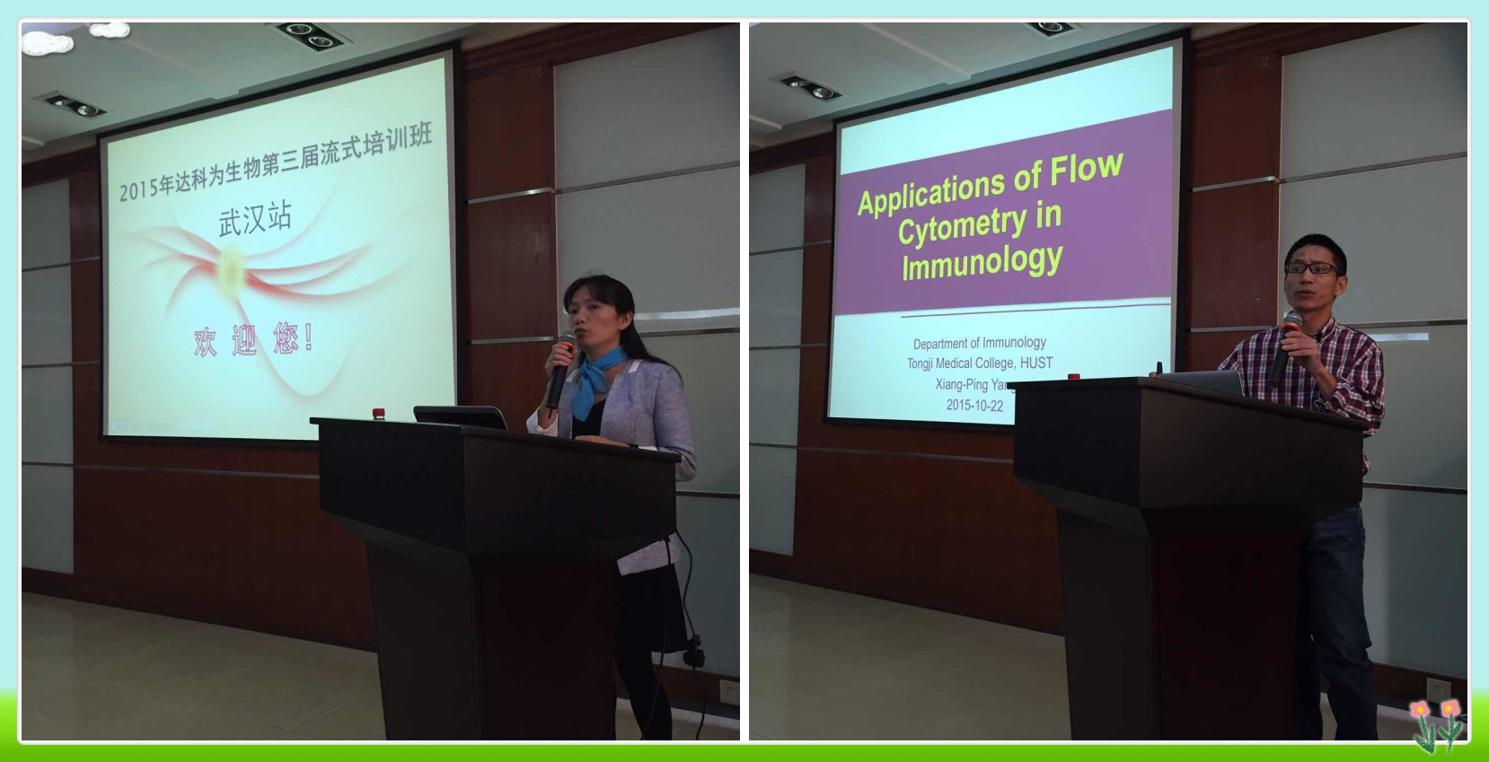 10月22日,2015年達(dá)科為生物第三屆流式培訓(xùn)班—武漢分站在華中科技大學(xué)同濟(jì)醫(yī)學(xué)院正式拉開帷幕。課程分為理論課與上機(jī)實(shí)驗(yàn),10月22日到23日上午是理論課程,23日下午是BioLegend的Mojosort磁分選實(shí)驗(yàn),24日到25日流式上機(jī)實(shí)驗(yàn)。