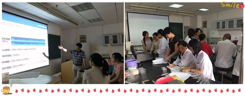 流式上機(jī)培訓(xùn)上午8點(diǎn)半開始,首先由華中科技大學(xué)同濟(jì)醫(yī)學(xué)院免疫系梁智輝老師為大家詳細(xì)介紹了本次實(shí)驗(yàn)的相關(guān)內(nèi)容,包括:檢測(cè)人外周血中的T/B/NK/NKT/Treg的marker的選擇、panel設(shè)置、對(duì)照選擇/設(shè)置,protocol染色操作及注意事項(xiàng),流式操作標(biāo)準(zhǔn)化之抗體稀釋等。
