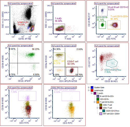 這次上機課程分為3個部分:T/B/NK/NKT/Treg10色檢測;Th1/Th2檢測;LEGENDplex多因子DEMO實驗。上機課程中達科為技術團隊為大家詳細介紹本次實驗的相關內(nèi)容,包括: marker選擇、panel設置、對照選擇/設置,protocol染色操作及注意事項。關于操作部分,表染及胞內(nèi)染色的 DEMO實驗之后詳細演示了儀器電壓補償?shù)恼{(diào)節(jié),同型對照及FMO對照的應用等。