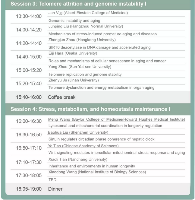 大會(huì)將邀請(qǐng)國(guó)際衰老研究相關(guān)領(lǐng)域的優(yōu)秀級(jí)科學(xué)家、專(zhuān)家學(xué)者及醫(yī)學(xué)工作者,圍繞“衰老的機(jī)制和干預(yù)”這一主題,針對(duì)“衰老機(jī)制”,“衰老與再生”,“代謝與衰老”,“衰老的遺傳和表觀遺傳機(jī)制”,“衰老的標(biāo)記物”,“衰老及衰老相關(guān)疾病的干預(yù)”等科學(xué)問(wèn)題進(jìn)行廣泛深入研討,旨在推動(dòng)科學(xué)應(yīng)對(duì)人口老齡化,合作研發(fā)防控過(guò)早老化及相關(guān)疾病的舉措。