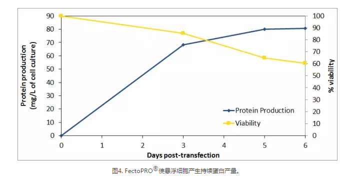 過去幾年,蛋白質(zhì)生產(chǎn)的持續(xù)時(shí)間有所增加,大部分蛋白質(zhì)生產(chǎn)過程持續(xù)1~2周,以獲得最佳的蛋白產(chǎn)量。FectoPRO?確保幾天內(nèi)產(chǎn)生持續(xù)的蛋白產(chǎn)量,同時(shí)保持較高的細(xì)胞活力以延長(zhǎng)蛋白生產(chǎn)。