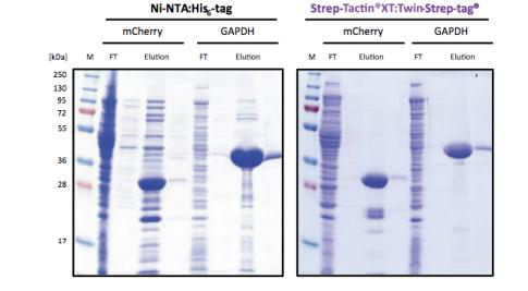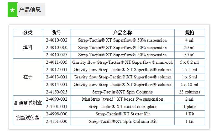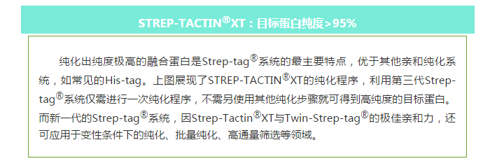 Strep-tag?是IBA life sciences基于生物素(Biotin)和鏈霉親和素(Streptavidin)之間的結(jié)合反應(yīng)開(kāi)發(fā)的蛋白純化系統(tǒng)。第三代Strep-tag?系統(tǒng):「Strep-Tactin?XT:Twin-Strep-tag?」蛋白純化系統(tǒng),其結(jié)合力可達(dá)pM級(jí)別但仍保持結(jié)合的可逆性和固定化蛋白的溫和復(fù)蘇能力。因此,用Strep-Tactin?XT 系統(tǒng)能有效提高您目標(biāo)蛋白的純度,解決您實(shí)驗(yàn)中所遇到的常見(jiàn)問(wèn)題。