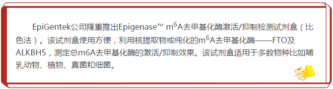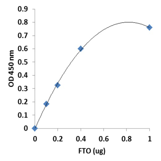 圖1 用重組FTO與Epigenase? m6A去甲基化酶激活/抑制檢測試劑盒(比色法)測定m6A去甲基化酶活性。