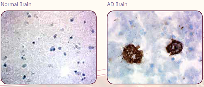 該克隆號在正常(左圖)和AD(右圖)冷凍腦組織切片中得到驗證,其中3A1可以特異免疫染色AD組織中的淀粉樣斑塊,然而在正常腦組織中未觀察到染色。