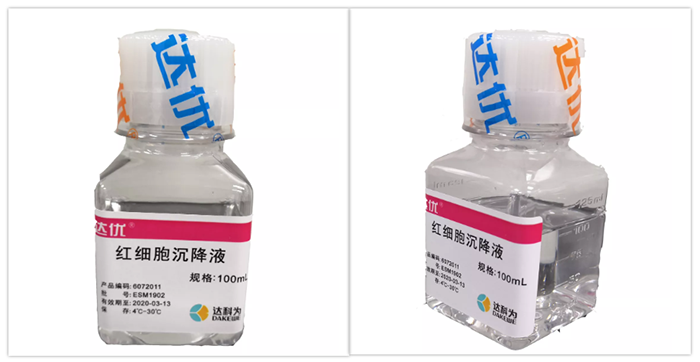 按照4:1的比例加入1mL 紅細(xì)胞沉降液,混勻,在室溫自然沉降。結(jié)果如下圖所示。