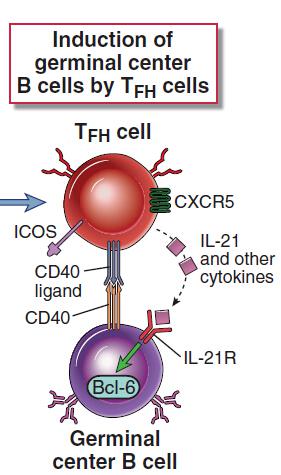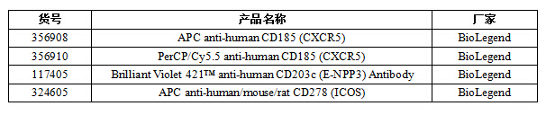 ICOS: Tfh 細(xì)胞上的 ICOS 與 B 細(xì)胞上的 ICOS-Ligand 作用,傳遞協(xié)同刺激信號,對 Tfh 細(xì)胞的產(chǎn)生及存活、 IL-21 的表達(dá)、發(fā)生中心的形成及特異性抗體的產(chǎn)生都至關(guān)重要。