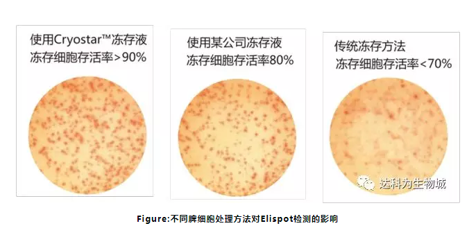 在 ELISPOT 檢測(cè)的應(yīng)用中,往往需要用到凍存的淋巴細(xì)胞樣品作為檢測(cè)細(xì)胞。由于 ELISPOT檢測(cè)的是細(xì)胞的免疫功能,不僅僅需要保持細(xì)胞的存活率,而且還要保證細(xì)胞的功能不發(fā)生變化。傳統(tǒng)的細(xì)胞凍存方法通常是為了保存細(xì)胞株,對(duì)細(xì)胞存活率的要求不高,更沒考慮保持細(xì)胞原有的免疫狀態(tài),所以傳統(tǒng)的細(xì)胞凍存方法已經(jīng)不能滿足 ELISPOT 檢測(cè)的要求。